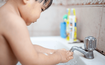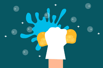 따뜻한 물에 중성세제를 섞은 후, 스펀지로 실리콘 표면의 비누찌꺼기와 먼지를 제거합니다. 이 과정을 생략하면 이후 약품이 제대로 침투하지 않습니다.
